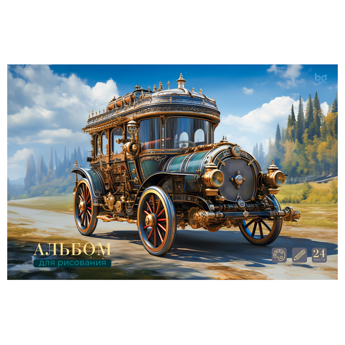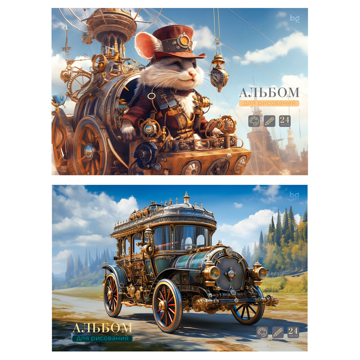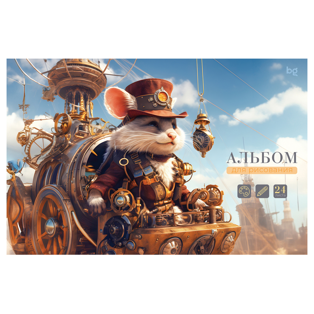 Альбом для рисования BG «Стимпанк» А4, размер 205*295 мм. Альбом с обложкой из высококачественного мелованного картона состоит из 24 листов офсетной бумаги 100% белизны. Тип скрепления изделия – скрепка. Плотность бумаги альбома составляет 100 г/м2, что соответствует техническому регламенту «О безопасности продукции, предназначенной для детей и подростков». Альбом отлично подходит для рисования различными типами красок, фломастерами, цветными и черно-графитными карандашами, гелевыми ручками. Без возрастных ограничений.