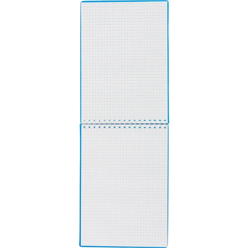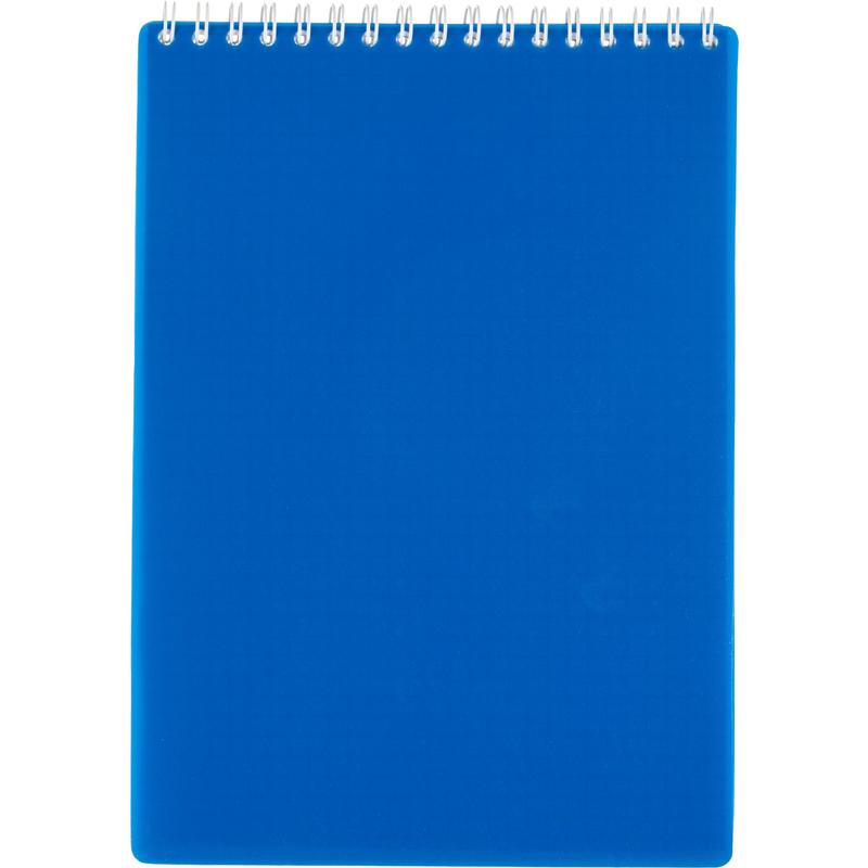 Мягкая обложка выполнена из синего пластика. Обложка защищает блок от механических повреждений при повседневном использовании. Блок и обложка скреплены металлической евроспиралью в виде гребня, расположенной сверху по короткой стороне, что удобно при использовании блокнота в альбомной ориентации.