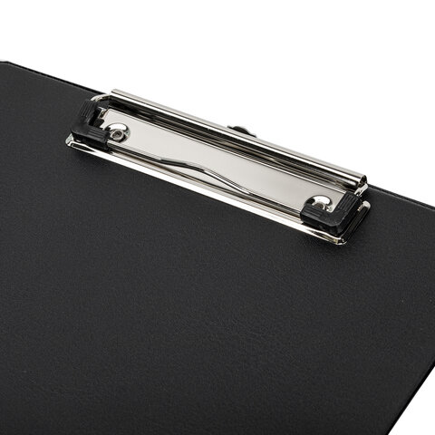 Доска-планшет формата А4 с верхним прижимом без крышки фиксирует до 90 листов. Изготовлена из плотного картона с покрытием из износоустойчивого ПВХ толщиной 2 мм, что позволяет комфортно делать записи на весу. Металлический прижим обеспечивает плотное прилегание документов, а выдвижной подвес позволяет разместить планшет на вертикальной поверхности.