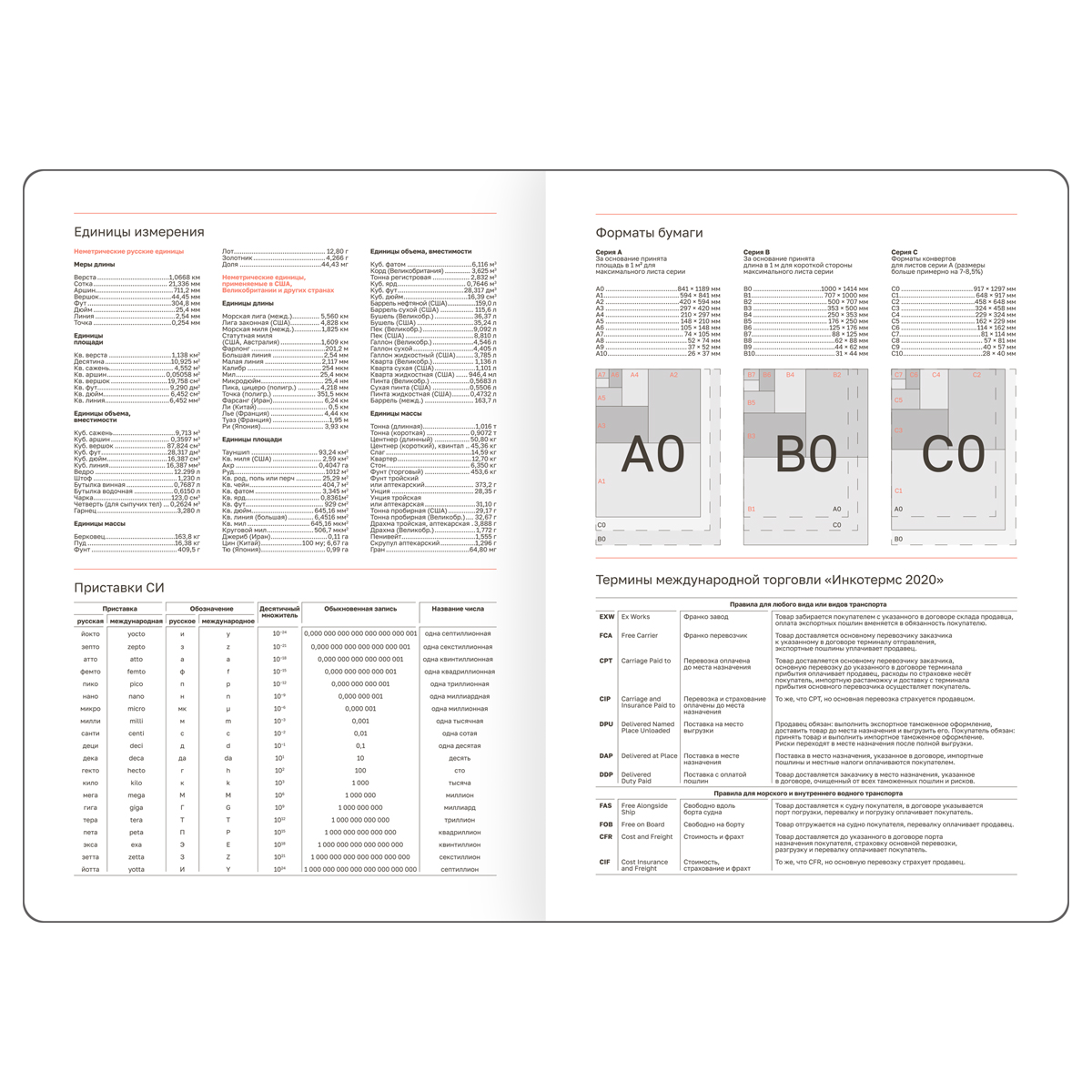 Перфорированные уголки и закладка-ляссе обеспечат комфорт и удобство при использовании. В ежедневнике предусмотрена справочная информация, годовой планер, календарь и другие полезные сведения. Подходит под персонализацию. Индивидуальная упаковка в термоусадочную пленку.