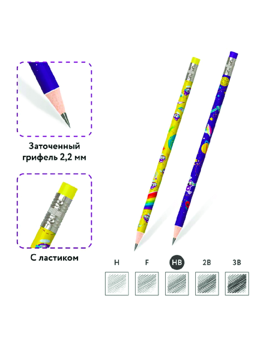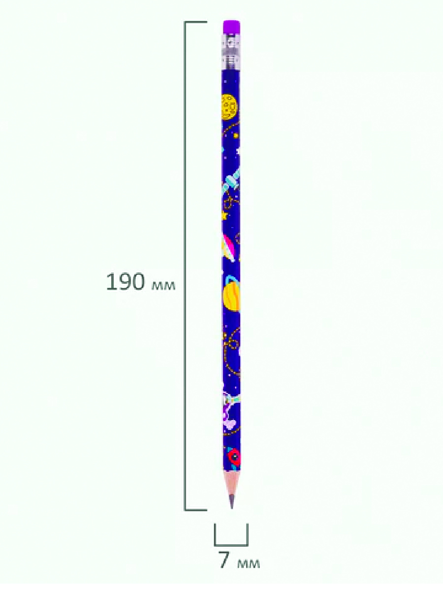 Каждый карандаш имеет индивидуальный штрих-код. Легко затачивается, максимально устойчив к повреждениям. Изготовлен из дерева высокого качества. Имеет круглый корпус с яркой печатью ассорти, оснащен ластиком. Карандаш длиной 190 мм обладает средней степенью твердости – HB.