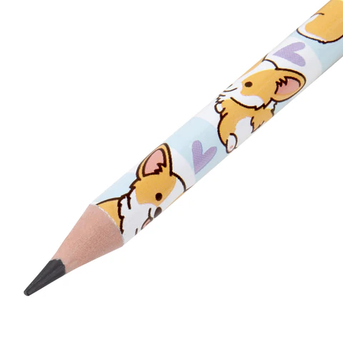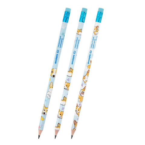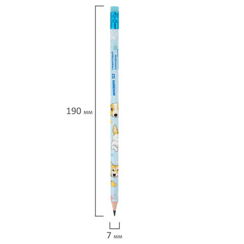 Легко и ровно затачивается, максимально устойчив к повреждениям. Изготовлен из пластика высокого качества. Ударопрочный грифель диаметром 2 мм не царапает бумагу и не крошится. Карандаш длиной 190 мм обладает универсальной степенью твердости – HB. Имеет круглый корпус с яркой печатью, оснащен цветным ластиком. Каждый карандаш украшен забавным и милым принтом – корги поднимет настроение и вдохновит на создание шедевров.
