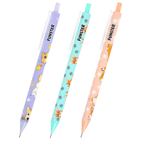Механический карандаш торговой марки FUNSTER выполнен в трех дизайнах с забавными корги и идеально подойдет для ведения заметок во время работы и учебы.