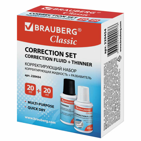 Устраните свои ошибки с помощью корректирующего набора BRAUBERG: корректирующая жидкость + разбавитель! Приобретите наш набор и исправьте свои ошибки прямо сейчас!