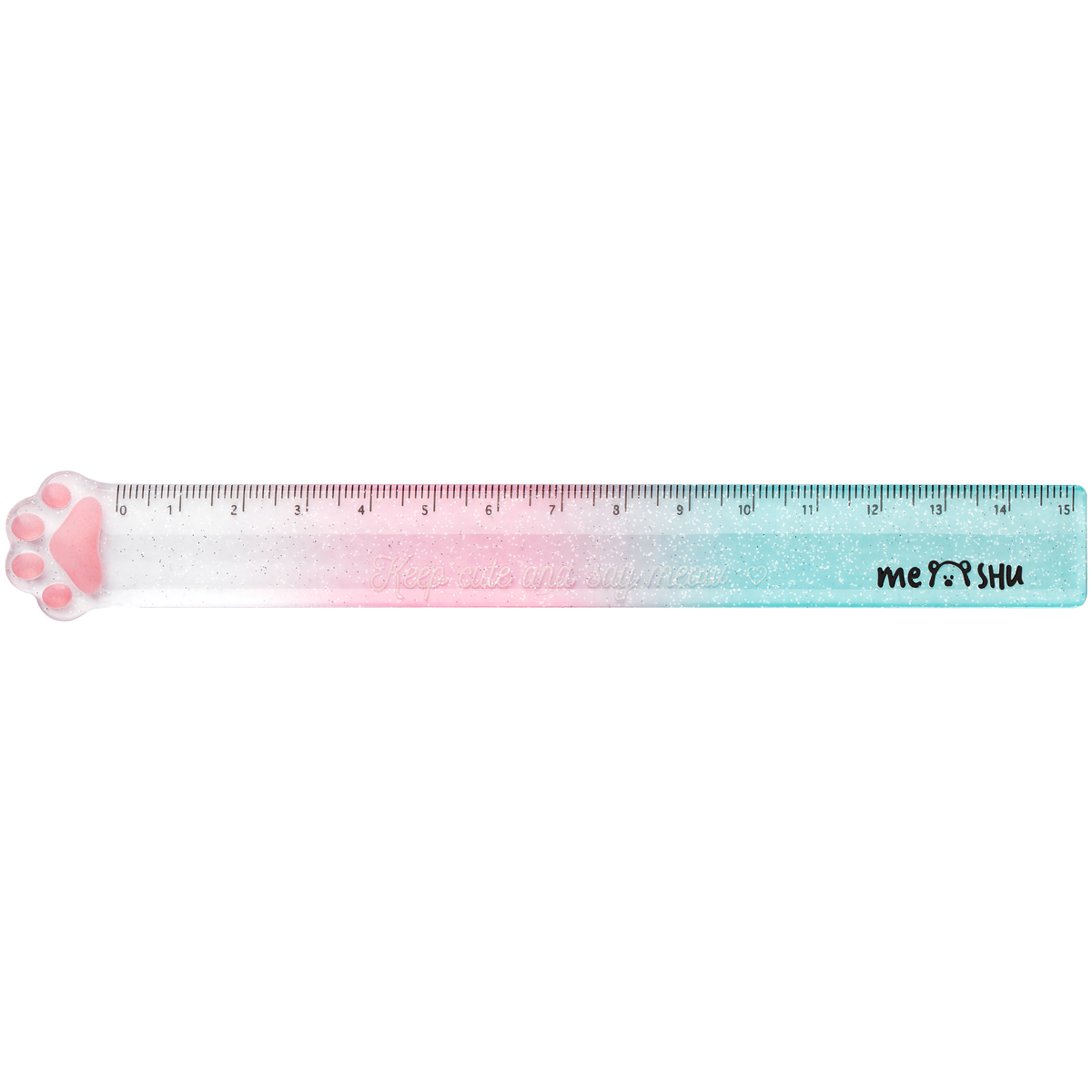 Линейка MESHU "Paw" в форме лапки создаст прекрасное настроение для учёбы и творчества. Длина шкалы — 15 см, ширина линейки — 20 мм. Линейка изготовлена из высококачественного тонированного пластика с точным нанесением шкалы. Милый дизайн дополняет градиент, надпись и глиттер. Линейка отлично помещается в пенал. Упакована в пакет с европодвесом.