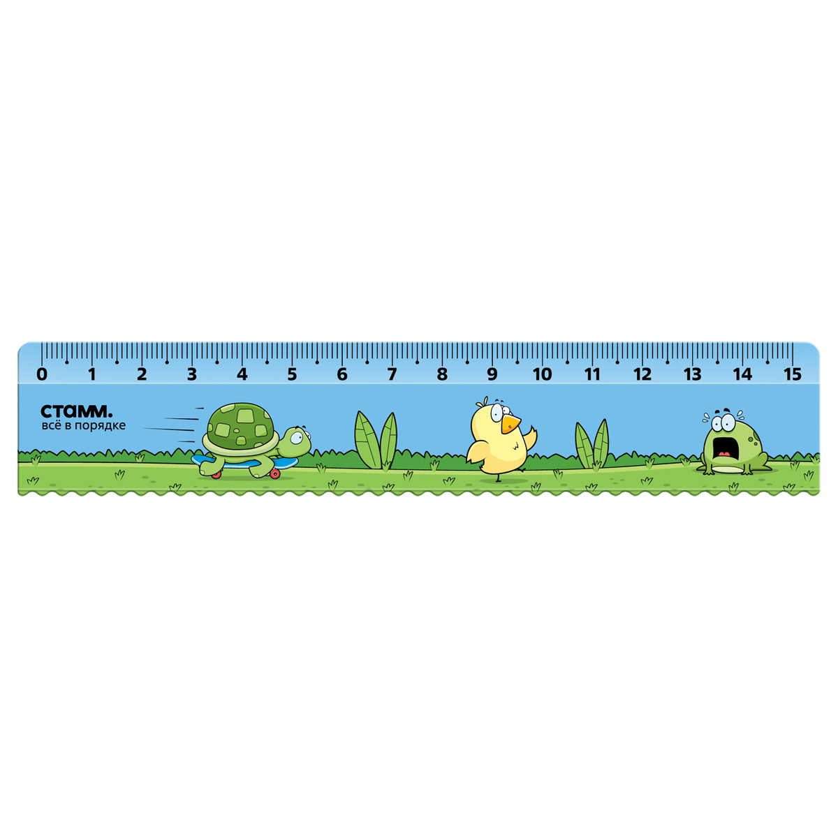 Линейка 15см СТАММ "Черепашка", пластиковая, с волнистым краем