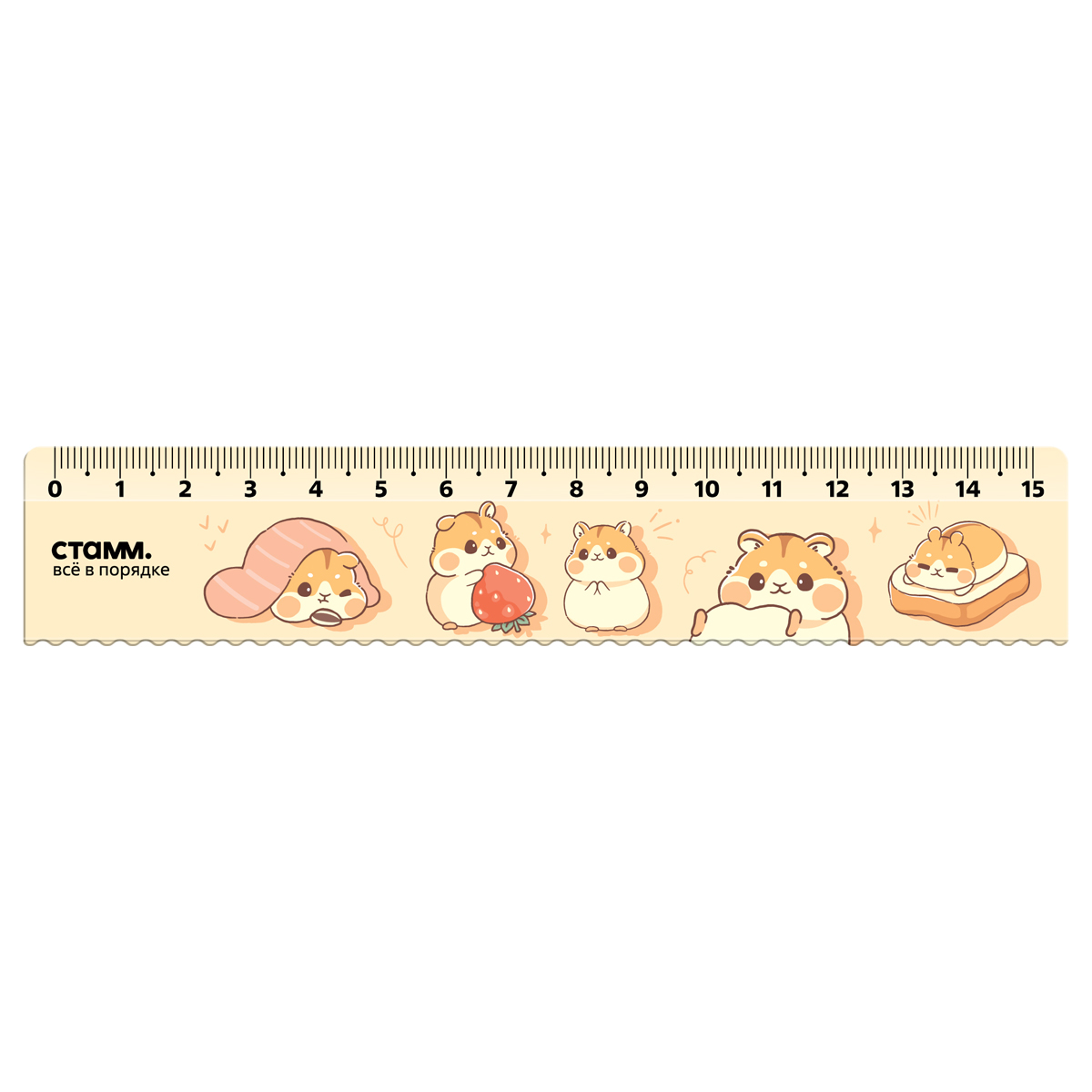 Линейка 15см СТАММ "Хомяки", пластиковая, с волнистым краем