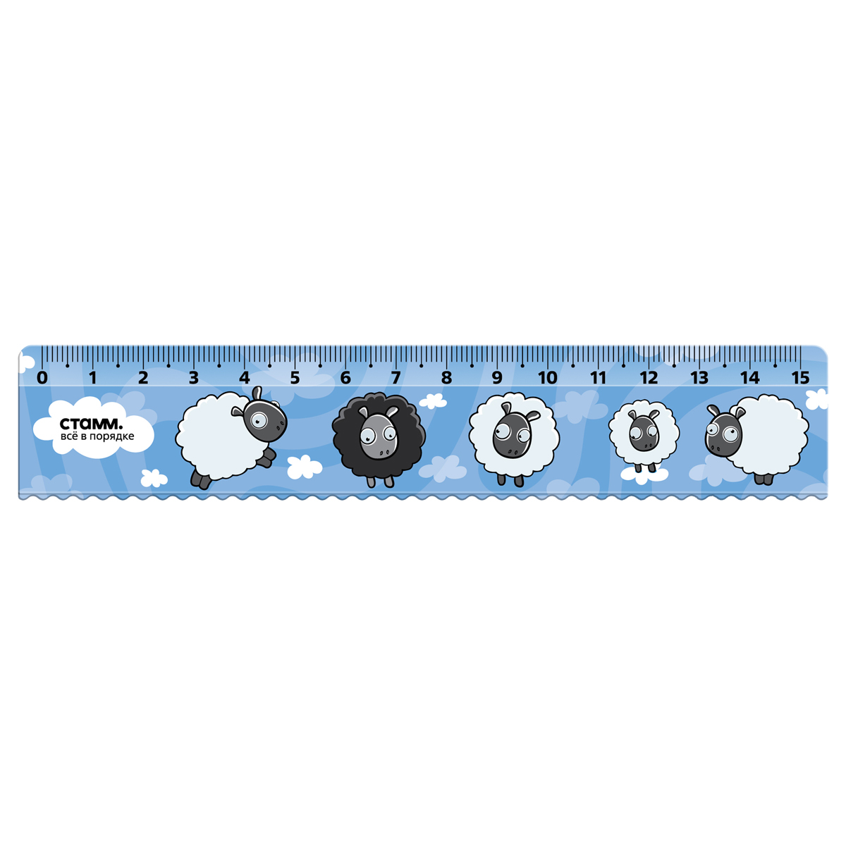 Линейка 15см СТАММ "Овечки", пластиковая, с волнистым краем
