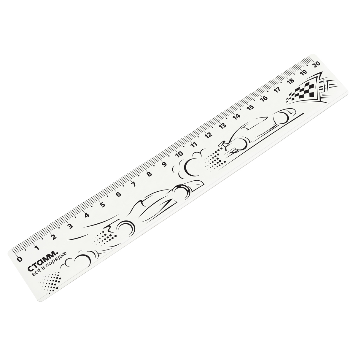 Линейка СТАММ "Машинки" предназначена для чертёжно-измерительных работ. Длина шкалы – 20 см, ширина линейки – 35 мм. Изделие имеет безопасные закруглённые края и чёткую контрастную миллиметровую шкалу. Линейка изготовлена из качественного полистирола, и имеет гладкую глянцевую поверхность. Линейка дополнена оригинальным дизайном. Цвет изделия – прозрачный.