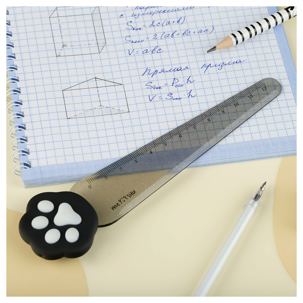 Пластиковая линейка MESHU "Paw" с топпером создаст прекрасное настроение для учёбы и творчества. Длина шкалы — 12 см. Ширина линейки — 30 мм. Она легко помещается в пенал. Линейка упакована в пакет с европодвесом.