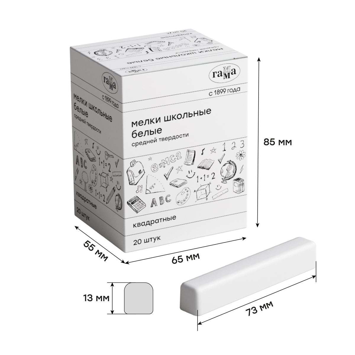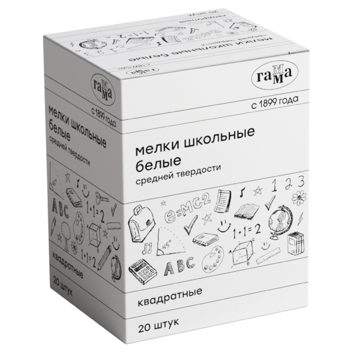 Набор из 20 квадратных школьных белых мелков ГАММА для классных и аудиторных досок, а также для рисования на асфальте. В упаковке 20 штук.