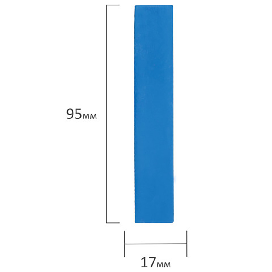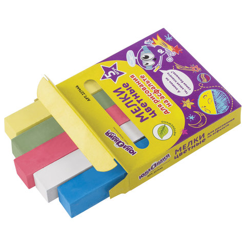 Изготовлен из высококачественного природного сырья, нетоксичен. Благодаря квадратной форме удобно ложится в руку. Легко смывается водой. Длина - 95 мм, диаметр - 17 мм. В наборе 5 мелков. 4 цветных мелка (красный, желтый, зеленый, голубой) и 1 белый мелок. Набор упакован в картонную коробку с европодвесом.