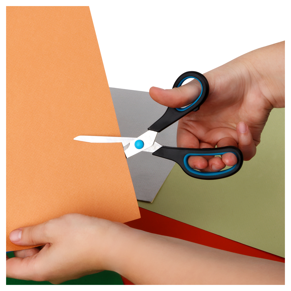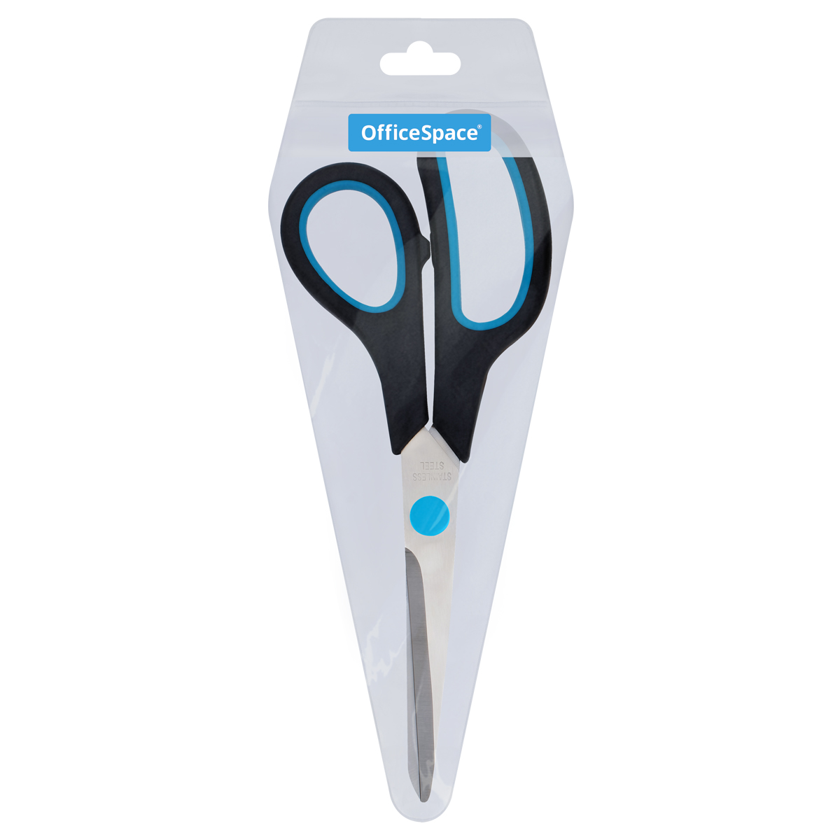 Ножницы OfficeSpace 19см, эргономичные ручки, черные с синими вставками