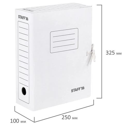 Предназначена для документов формата А4 и вмещает до 900 листов. Высота папки составляет 325 мм, ширина - 250 мм, а ширина корешка - 100 мм. Имеет повышенную прочность за счет использования качественного микрогофрокартона. Спокойный белый цвет архивной папки не будет отвлекать от рабочего процесса.