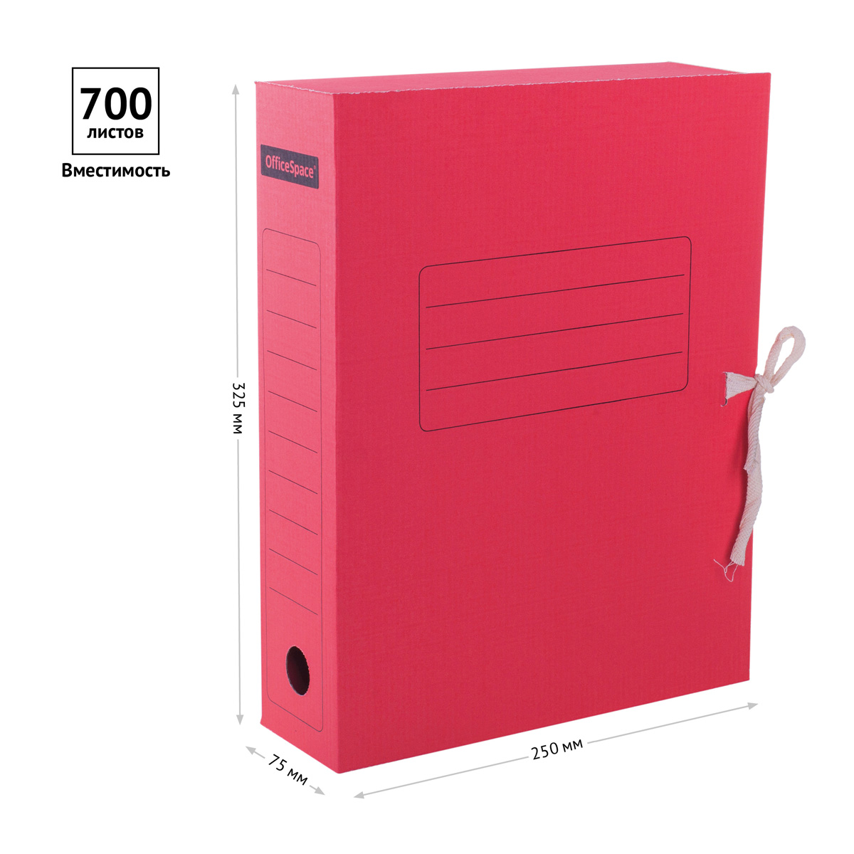 Папка архивная на завязках OfficeSpace формата А4 идеально подойдёт для хранения большого объёма документации. Товар изготовлен из микрогофрокартона красного цвета. Наличие 2-х завязок обеспечивает дополнительную прочность. Она обеспечивает максимальный доступ к документам при раскрытии. Прочная конструкция и стандартизованный размер позволяют хранить документы вертикально и горизонтально на стеллажах или в архивных коробах. На лицевой и боковых гранях имеются поля для маркировки. Размер папки: 250*75*325 мм, ширина корешка: 75 мм. Вместительность: 700 л.