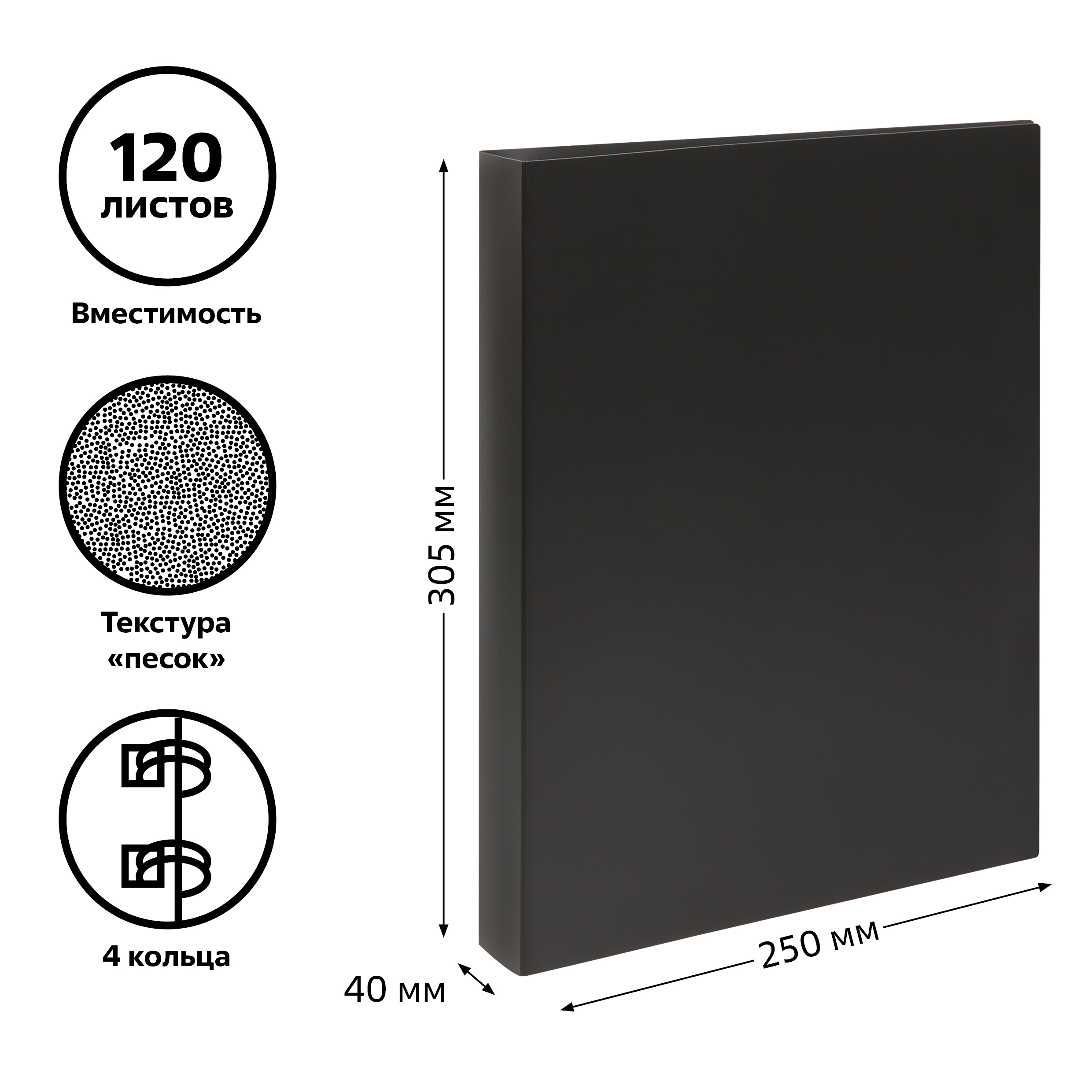 Папка на 4 кольцах «СТАММ» предназначена для хранения перфорированных документов формата А4. Изготовлена из качественного полипропилена толщиной 500 мкм. Размер изделия составляет 310*250 мм. Ширина корешка 40 мм позволяет вмещать в папку до 250 листов. Кольцевой механизм с 4 кольцами диаметром 25 мм надёжно держит документы. Цвет папки – чёрный.