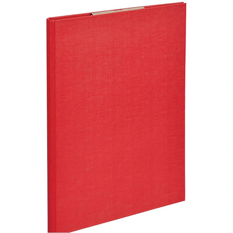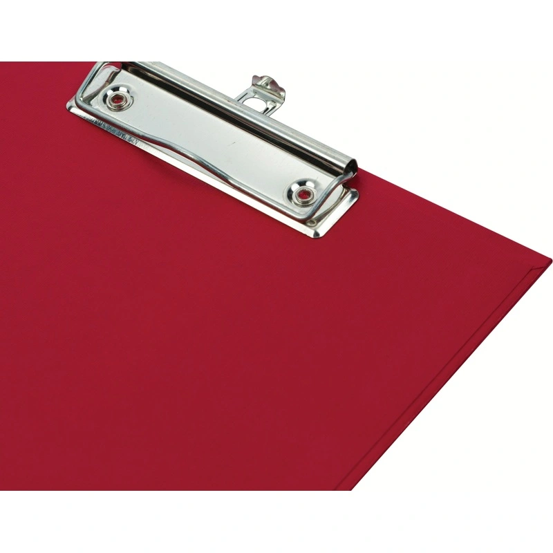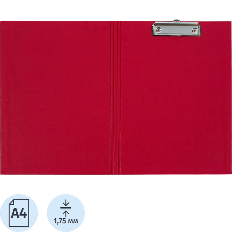 Папка-планшет формата А4 (227.5×314 мм) изготовлена из плотного картона,сверху покрыт бумвинилом красного цвета. Позволяет комфортно работать с документами на весу. Металлический прижим надежно удерживает листы и файлы. Вместимость до 100 листов. С крышкой.