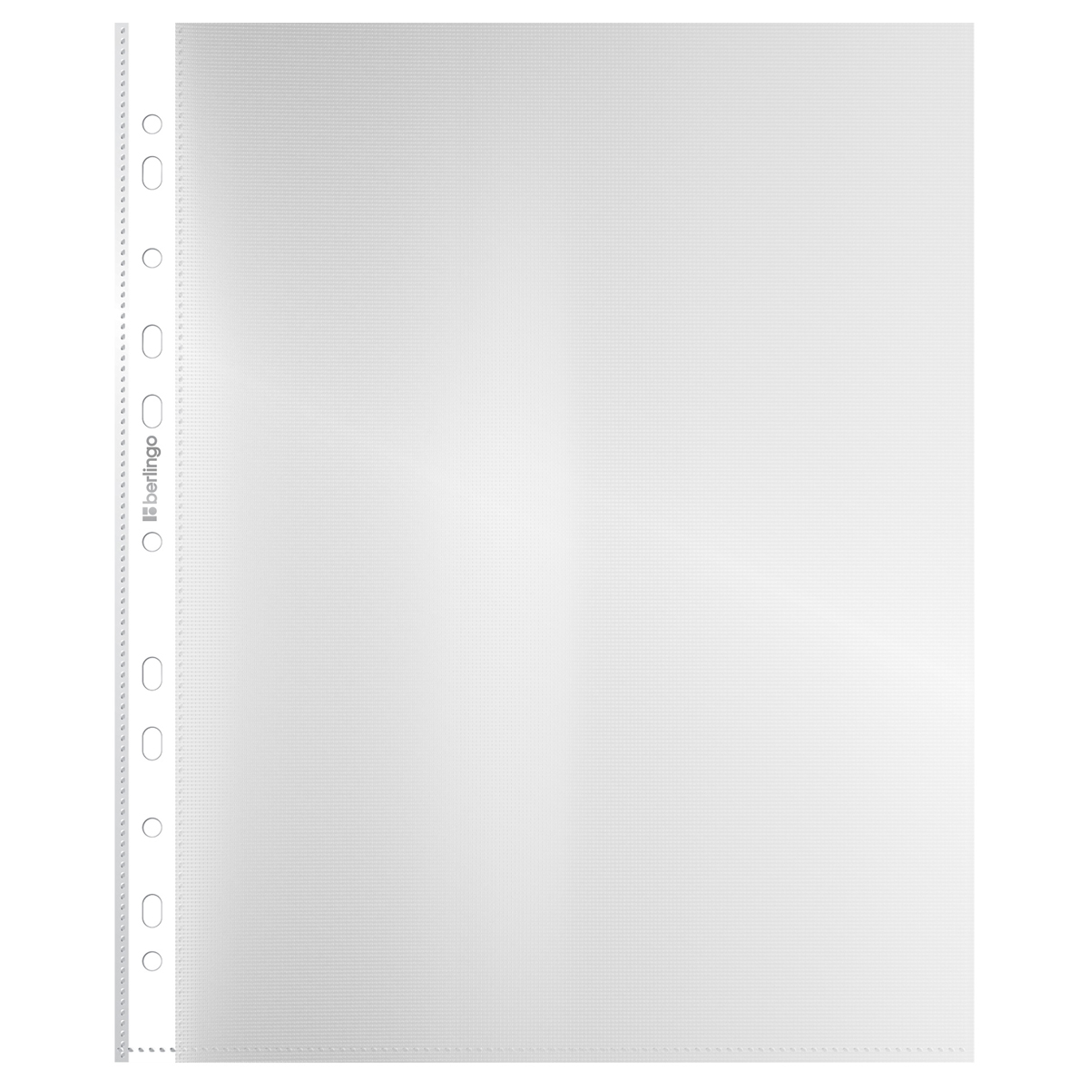 Матовые прозрачные файлы-вкладыши Berlingo Squares формата А4 размера 305*235 мм предназначены для хранения неперфорированных документов А4 в любых папках и защиты листов от внешних воздействий. Вертикальная ориентация, толщина пленки 40 мкм, вместимость файла от 50 до 100 листов бумаги, в зависимости от плотности. В упаковке 100 штук. Уникальная технология производства вкладышей, при которой используется до 40 % больше материала, благодаря чему достигается максимальная прочность каждого вкладыша. Масса каждого вкладыша 4,8 г. Уникальная рельефная фактура поверхности вкладышей позволяет легко помещать и извлекать документы, препятствует «прилипанию» вкладышей. Серебристый логотип бренда на боковой ленте.