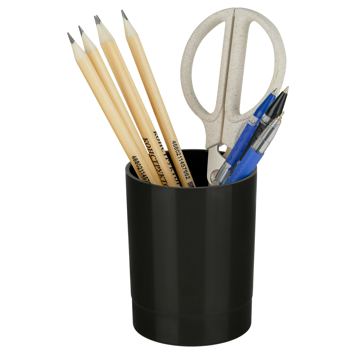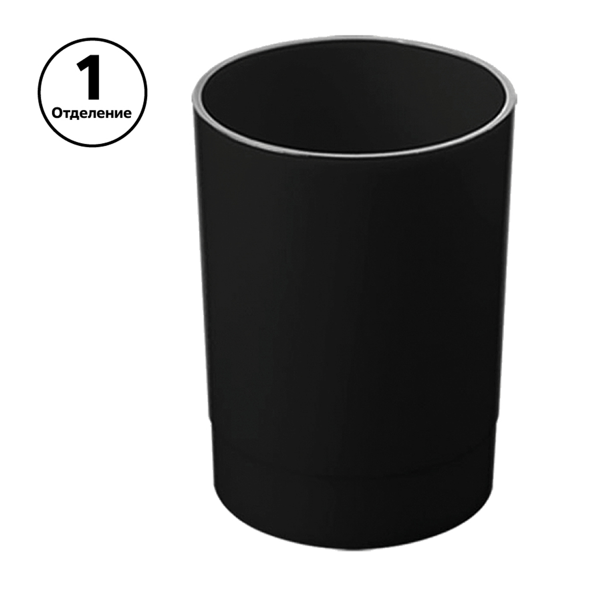 Подставка-стакан "СТАММ" серии "Лидер" предназначен для хранения письменных и канцелярских принадлежностей. Удобная круглая форма. Легкий и прочный корпус. Подставка впишется в любое рабочее пространство благодаря минималистичному дизайну. Цвет - черный. Изделие высотой 90мм и диаметром 65мм выполнено из качественного пластика.