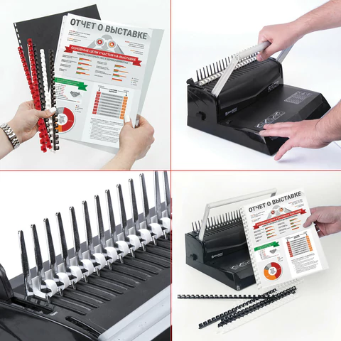 Рекомендуется использовать для переплета документов объемом от 41 до 55 листов. Изготовлена из высококачественного пластика белого цвета. Состоит из 21 кольца диаметром 10 мм. В упаковке 100 штук.
