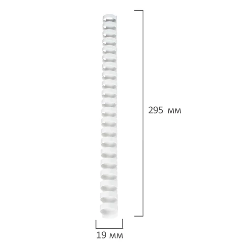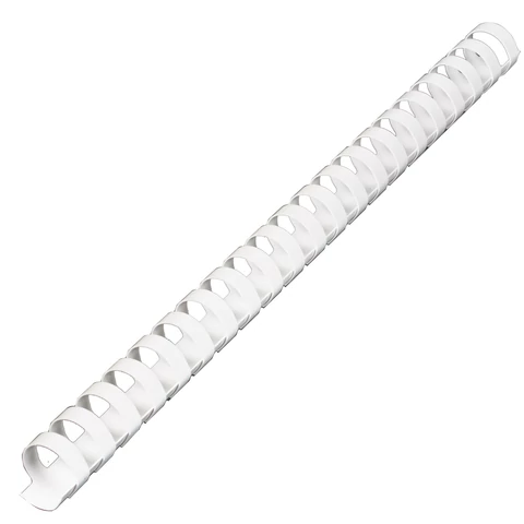 Рекомендуется использовать для переплета документов объемом от 121 до 150 листов. Изготовлена из высококачественного пластика белого цвета. Состоит из 21 кольца диаметром 19 мм. В упаковке 100 штук.