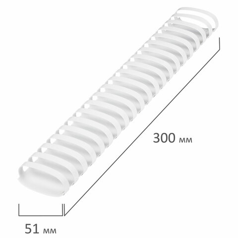 Рекомендуется использовать для переплета документов объемом от 411 до 450 листов. Изготовлена из высококачественного пластика белого цвета. Состоит из 21 кольца диаметром 51 мм. В упаковке 50 штук.