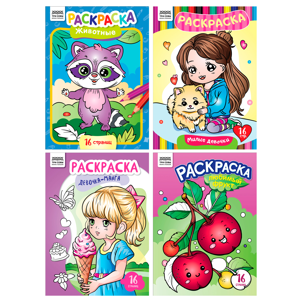 Раскраска «В стиле kawaii» от бренда «ТРИ СОВЫ» формата А4 – это настоящая находка для тех, кто хочет увлечь своего ребёнка на долгое время. Внутренний блок состоит из 16 страниц плотной бумаги, которая подходит для раскрашивания карандашами и фломастерами. Яркая обложка из мелованного картона с милыми героями точно понравится детям. В запайке 4 разных раскраски на темы: «Милые девочки», «Девочка-Манга», «Любимый фрукт» и «Животные».