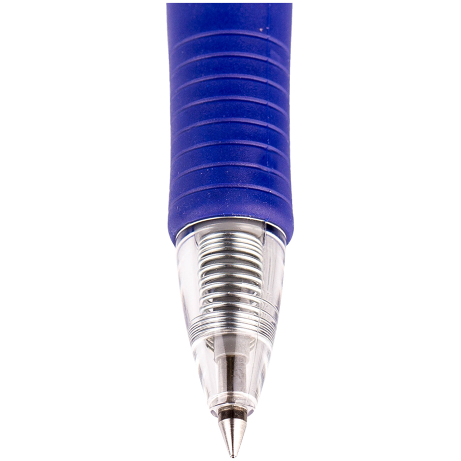 Ручка гелевая с автоматическим механизмом. Материал корпуса - пластик, резиновый грип предотвращает скольжение ручки в пальцах. Толщина пишущего узла - 0,5 мм. Цвет чернил - синий.