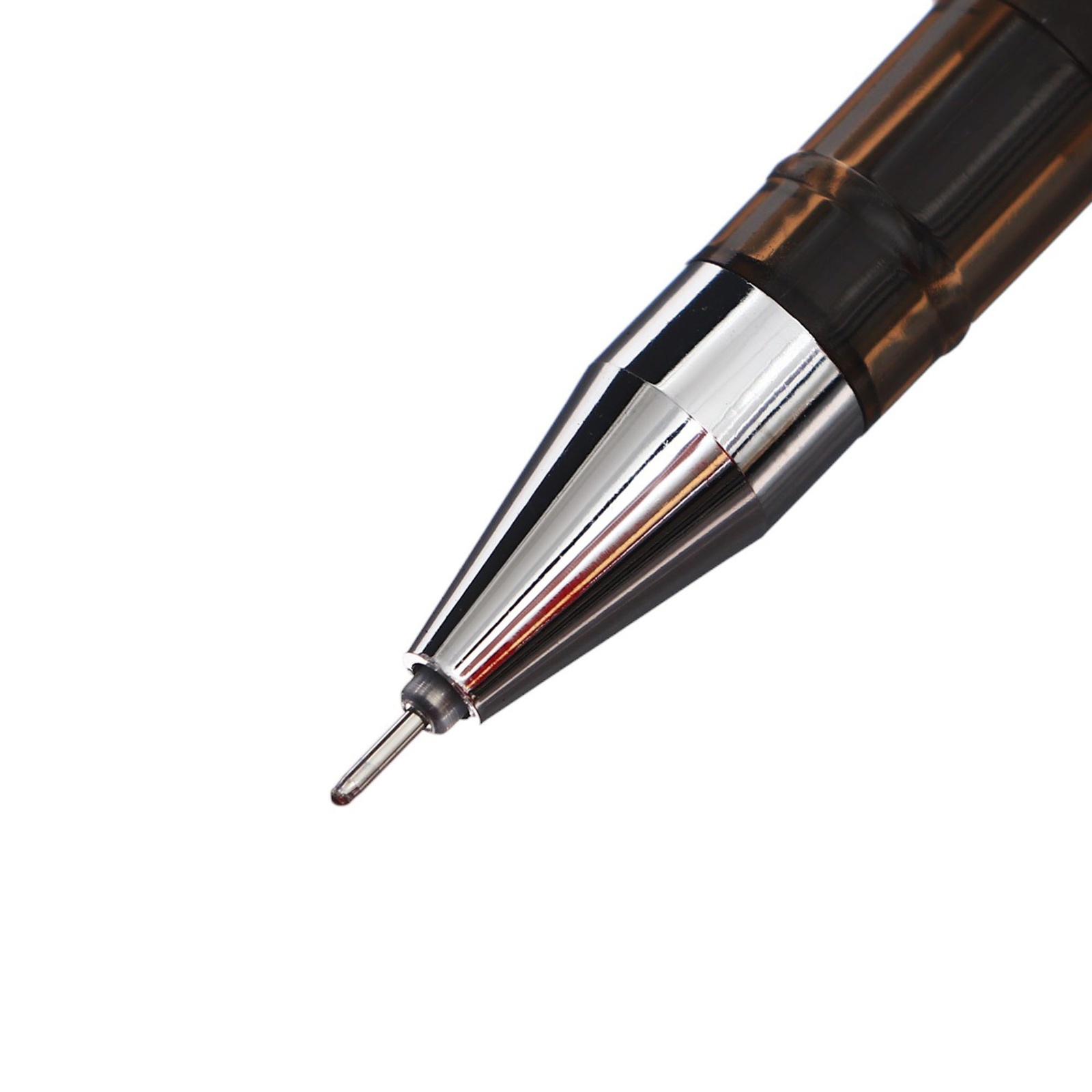 Эта гелевая ручка — ваш выбор для плавного и контрастного письма. Чёрные чернила и пишущий узел 0,5 мм образуют насыщенную линию, которая хорошо читается на любой бумаге. Классический гладкий корпус без лишних деталей обеспечивает привычное ощущение в руке.