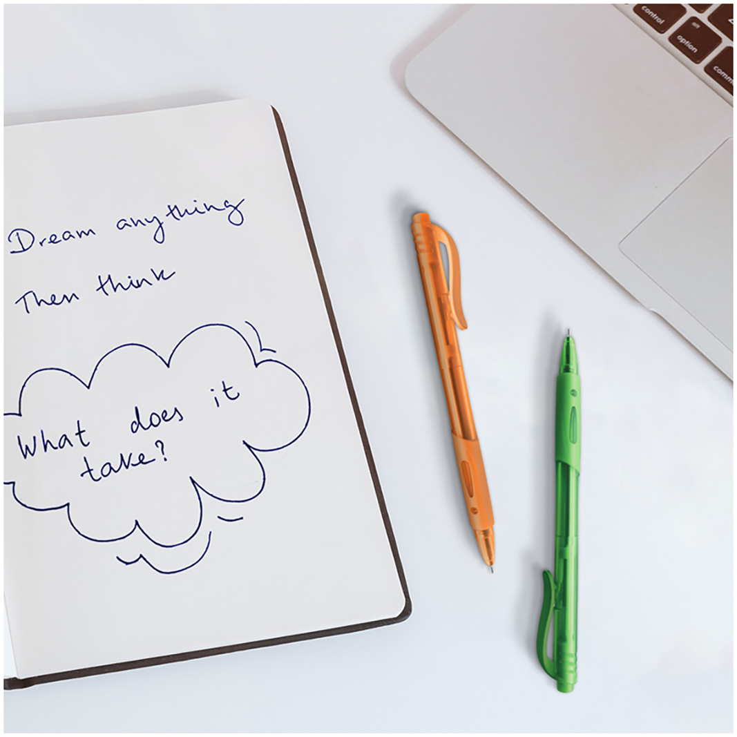 Автоматическая шариковая ручка OfficeSpace «Знак!» с кнопочным полуавтоматическим механизмом подойдет для ежедневного использования. Внутри яркого цветного пластикового корпуса – синие чернила. На ручке есть клип – можно закрепить её на одежде или тетради. Специальная резиновая накладка грип-зоны препятствует выскальзыванию ручки из пальцев. Ручка представлена в 5 цветах корпуса: синий, зелёный, оранжевый, фиолетовый, розовый. Благодаря диаметру пишущего узла 0,7 мм подходит для любого стиля письма.