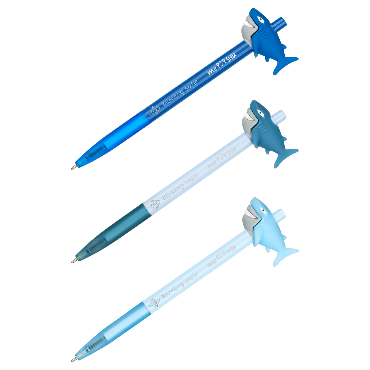 Шариковая автоматическая ручка MESHU "Shark" — это одновременно канцелярская принадлежность и яркий аксессуар-игрушка, который поднимет настроение на работе или учёбе. Корпус украшен забавным топпером. Диаметр пишущего узла составляет 0,7 мм, за счёт чего ручка подходит для любого стиля письма. Благодаря чернилам синего цвета её можно использовать в повседневной жизни на постоянной основе. Толщина линии письма составляет 0,5 мм. Чернила пониженной вязкости обеспечат мягкое и быстрое письмо. Они сменные, что говорит о долговечности изделия.