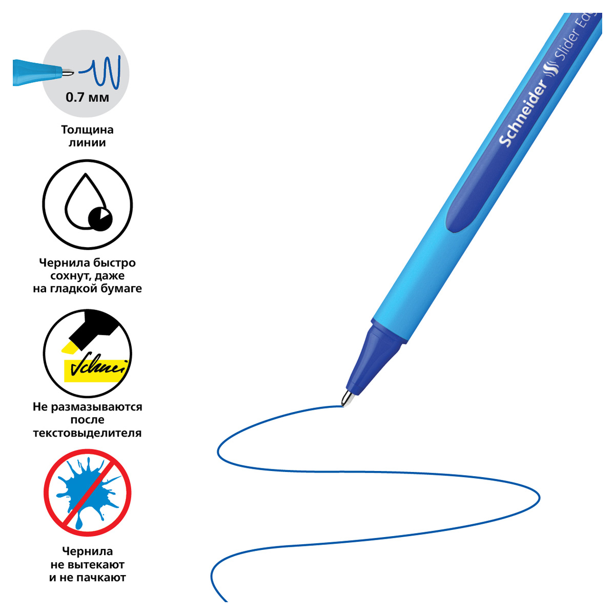 Шариковая ручка Schneider Slider Edge XB с эргономичным трехгранным прорезиненным корпусом. Диаметр пишущего узла ручки составляет 1,4 мм, толщина линии письма – 0,7 мм. Длина письма может достигать 3000 метров! Цвет ручки - синий. Ручка изготовлена с использованием запатентованной технологии Viscoglide® для необычайно легкого и скользящего письма. Цвет элементов корпуса соответствует цвету чернил. Письменные принадлежности Schneider разрабатываются и производятся только в Германии.