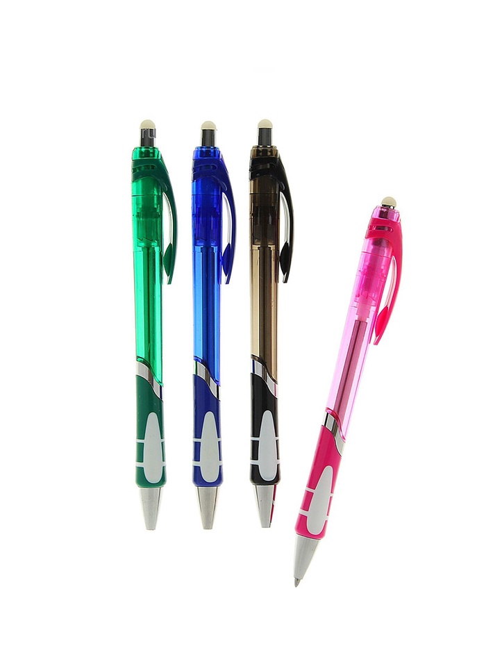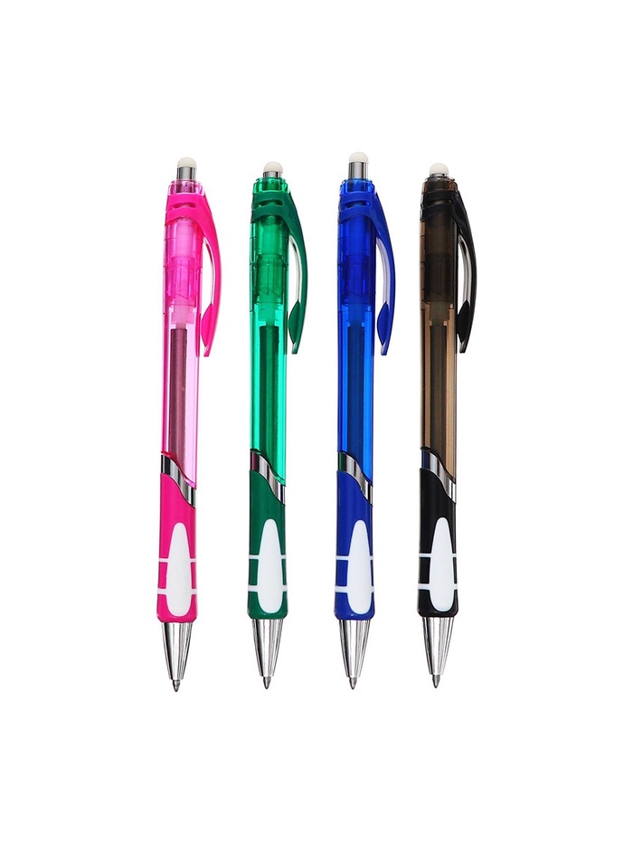 Ручка шариковая со стираемыми чернилами, линия 0.8 мм, автоматическая, стержень синий, корпус тонированный с резиновым держателем