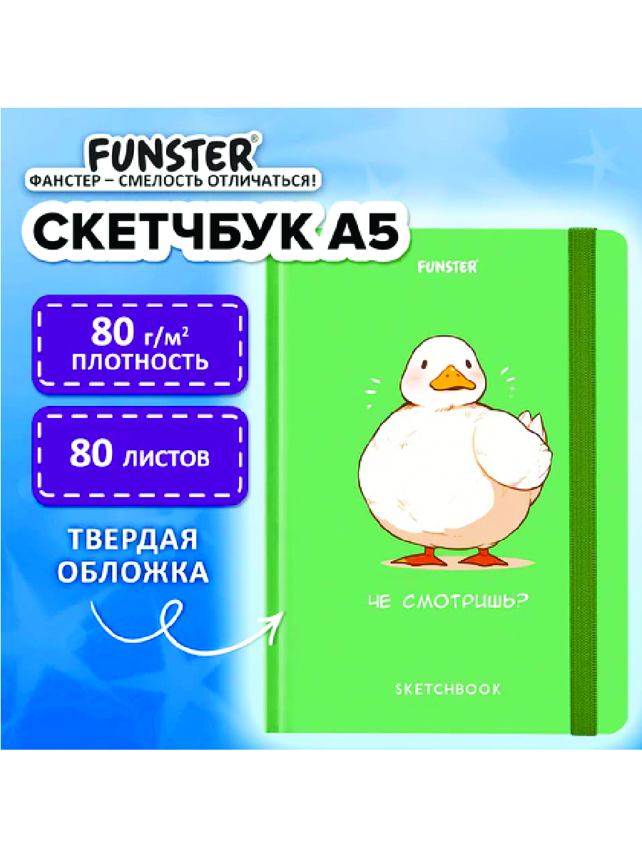 Скетчбук FUNSTER – это замечательный способ привнести в жизнь больше творчества! Заведите себе привычку всегда иметь его при себе и тогда сможете не только сохранить в памяти все свои творческие идеи, но также усовершенствовать навыки рисования!