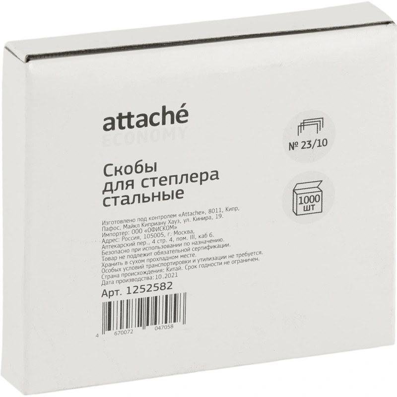 Скобы для степлера № 23/10 Выбор есть (Attache Economy) предназначены для степлеров со сшивающей способностью от 2 до 75 листов. Скобы выполнены из стали с цинковым покрытием. 1000 скоб в картонной упаковке.