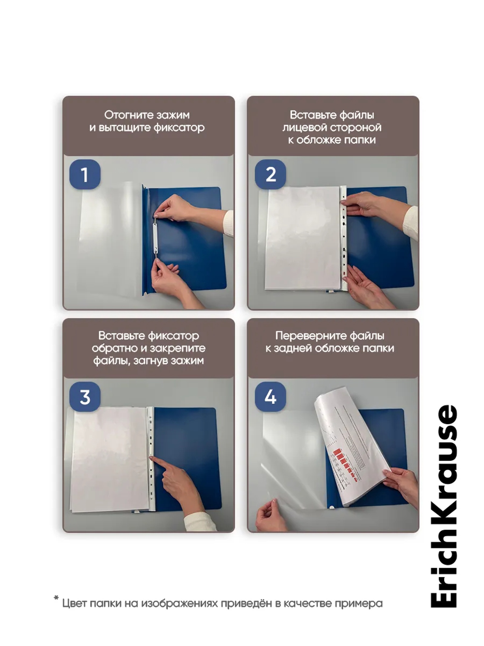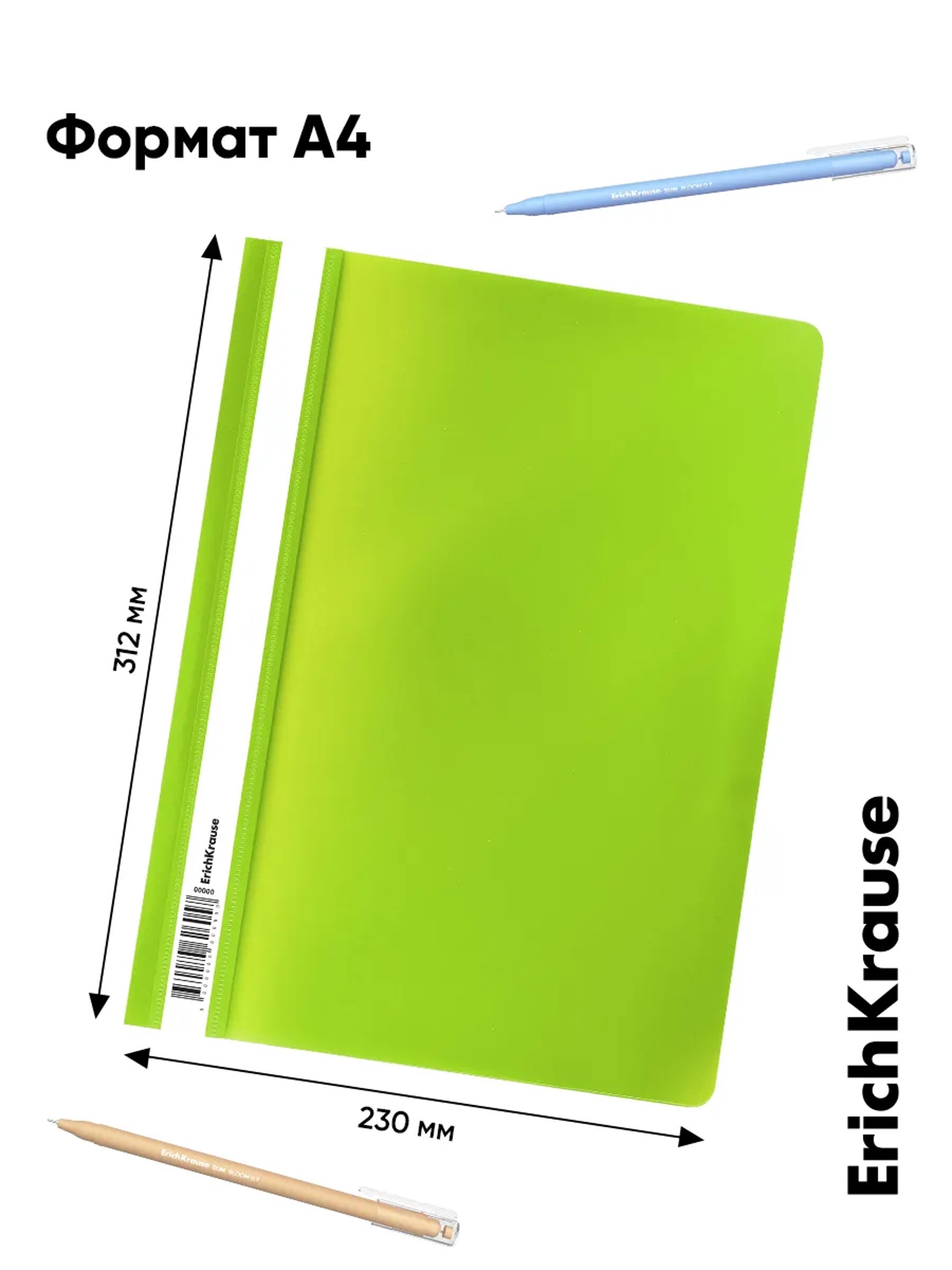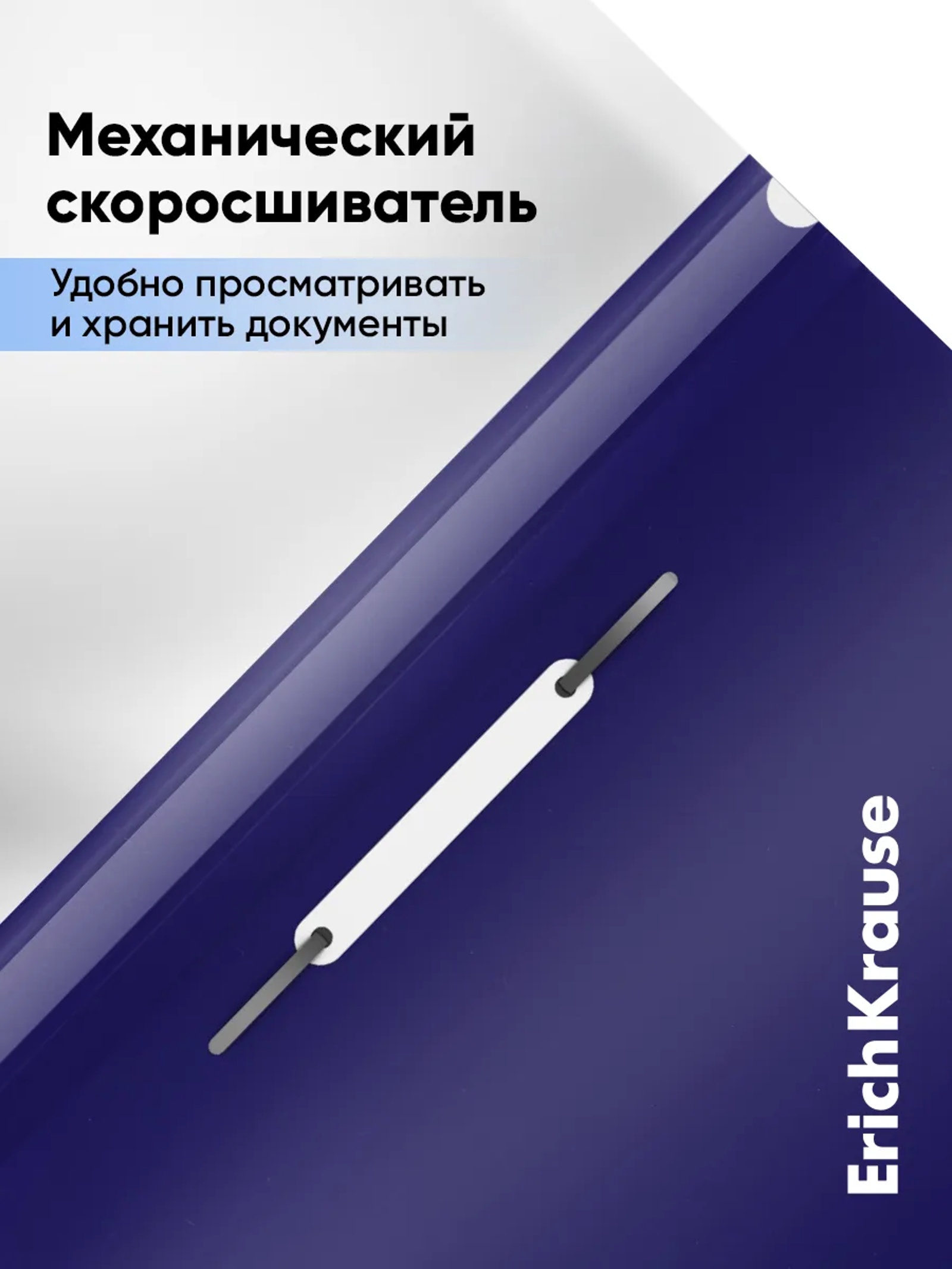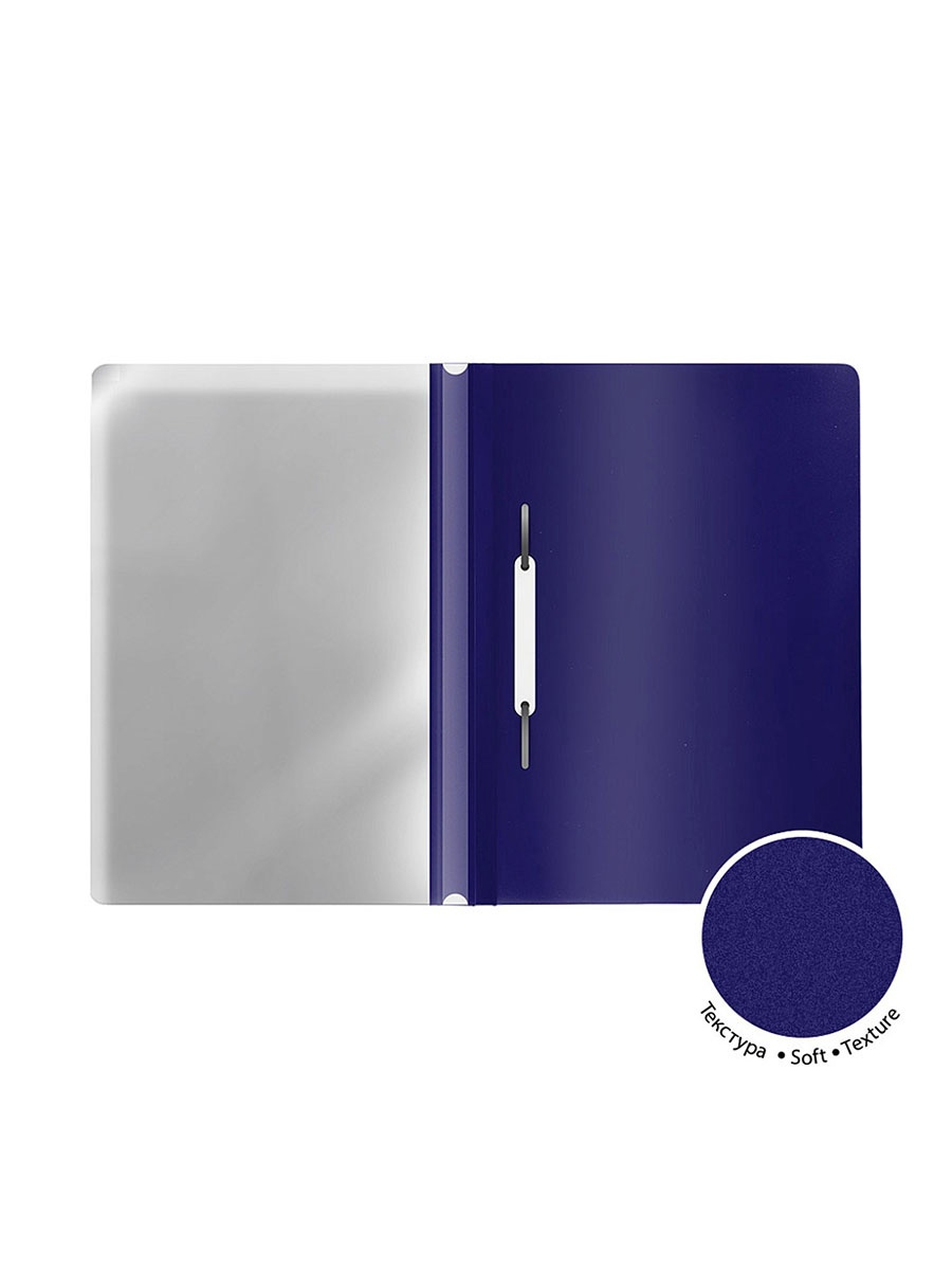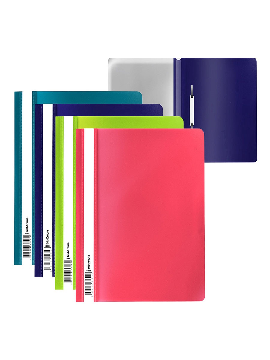 Предназначена для быстрого сшивания, хранения и просмотра документов. Цвета – ассорти (бирюзовый, индиго, коралловый, лайм). Конструкция: механический скоросшиватель, прозрачный верхний лист, усиленный пластиковый корешок с прозрачной полосой для информационной карточки. Вместимость – до 130 листов бумаги. Размеры – 312х230 мм; толщина верхнего листа – 0,12 мм, нижнего – 0,18 мм.