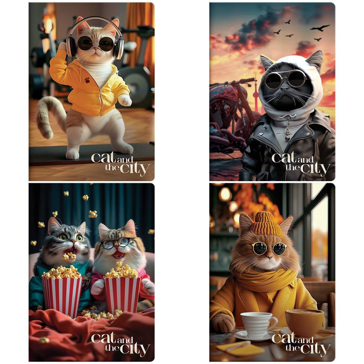 Тетрадь MESHU серии "Коты в городе" евроформата А5 (150*210 мм) на скобе состоит из 40 листов. Внутренний блок – офсетная бумага плотностью 65 г/м², белизна – 100%, линовка – клетка с полями. Обложка тетради изготовлена из импортного целлюлозного картона с глянцевой ламинацией и тиснением фольгой. Обложка выполнена в креативном дизайне с цветной запечаткой форзаца. Дополнительные листы, на которых удобно записывать важные заметки, являются логичным продолжением общего дизайна тетради.