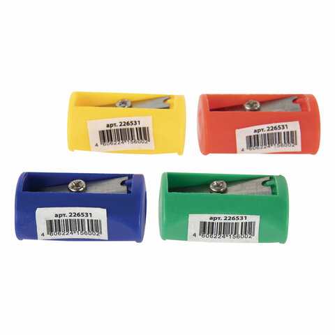 Эргономичный корпус овальной формы выполнен из пластика. Яркие цвета ассорти. Острое стальное лезвие обеспечивает быструю и легкую заточку. Размер - 26х20х14 мм.